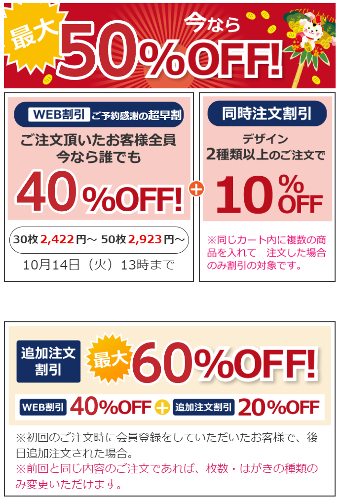 様々なクーポンや割引を組み合わせて、年賀状をお得に注文する方法は知らなきゃ損です。